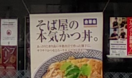 入口に「そば屋の本気かつ丼。」のポスターがあったので、(そば屋? 牛丼屋では?、と内心ツッコミを入れながら)かつ丼とそばのセット(税込 930円)(平成29年12月現在)を注文したのです。かつ丼1人前と、そば1人前のセットなので、実質2人前。ボリュームたっぷりだったのです。