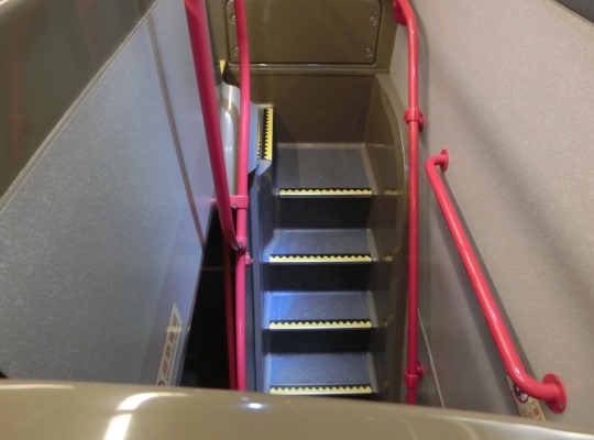 市内に入るとこまめにバス停に停車していったのです。降車客が途切れたらすぐにバスは発車するようで、みんな、1つ前のバス停を発車すると同時に階段を下りて出口へ向かっていたのです。走行中の車内とはいえ、捕まる場所はたくさんあり、変な揺れ方もしないので、特に問題なかったのです。
