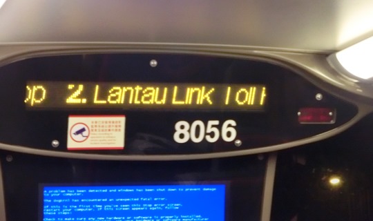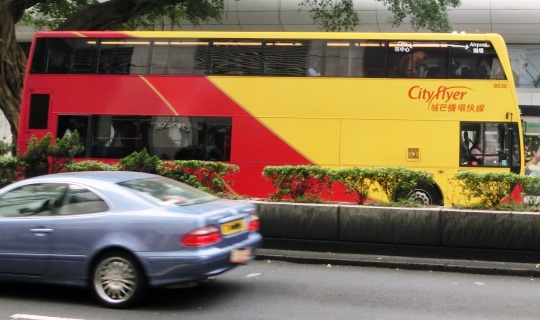 香港空港から市内(九龍エリアや、香港島のセントラルエリア)へは、鉄道(エアポートエクスプレス・機場快線)とバスがあるのです。鉄道はバスの半分以下の時間で市内に到着できますが運賃はバスの3倍、市内での駅が九龍駅と香港駅(セントラルエリア)の2駅のみ。バスは市内でこまめに停車するうえに、24時間営業なのです。今回はバスで市内へ移動したのです。