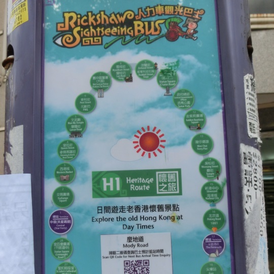 香港島や九龍エリアの観光地をぐるぐる巡回する観光客向けのバスです。2階建で屋根がないオープントップバスで、車体側面に人力車のイラストが描かれています。(運賃が高い以外は)普通の市内バスと同じ扱いで運行されており、予約等は不要で、バス停から乗車できます。