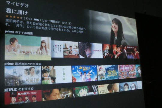 しかし正面(人間が座る場所)から見ると、スクリーンのしわがはっきり分かります。これを防ぐには、短焦点プロジェクター向けのスクリーンが必要になるようです。とはいえ、(その2)のように番組本編が始まれば(電線が少し波打っている程度で)気にしないという考え方もあります。また、平らな壁に投影する場合はしわは発生しません。